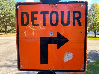 Please follow the posted signage and pass carefully around the construction zone.